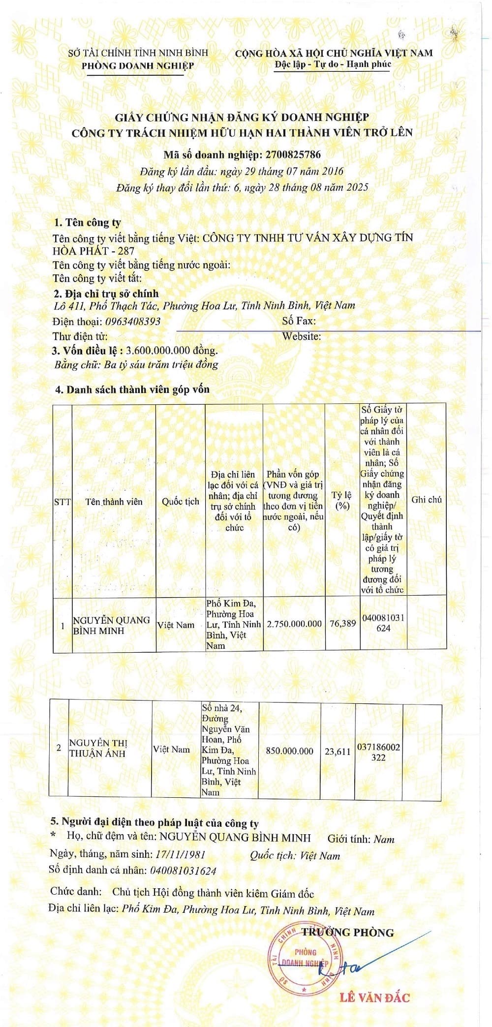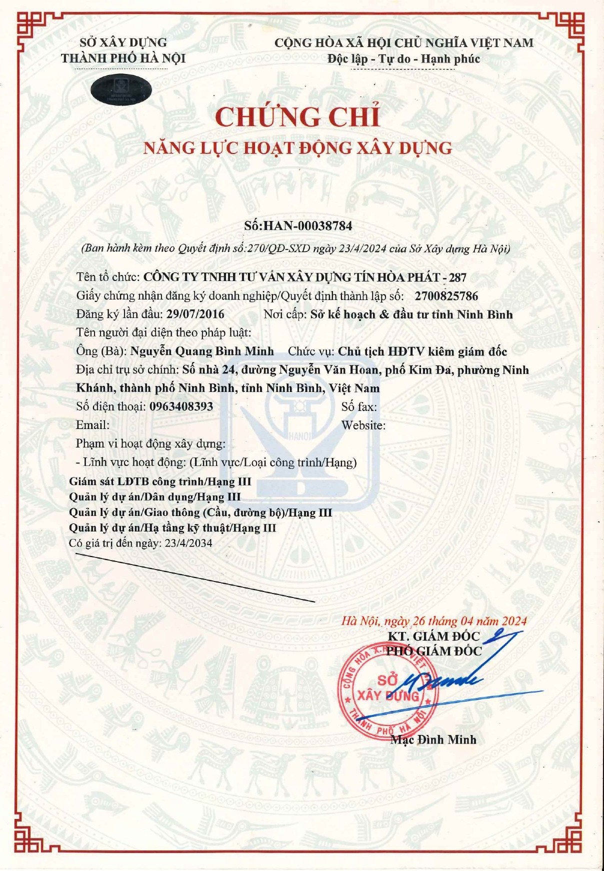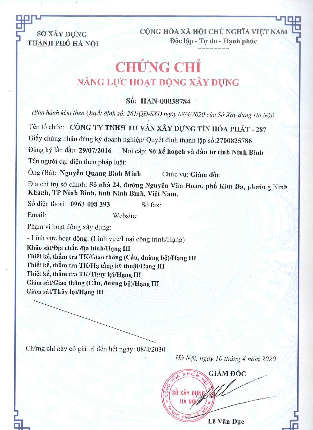 CÔNG TY TNHH TƯ VẤN XÂY DỰNG TÍN HOÀ PHÁT – 287