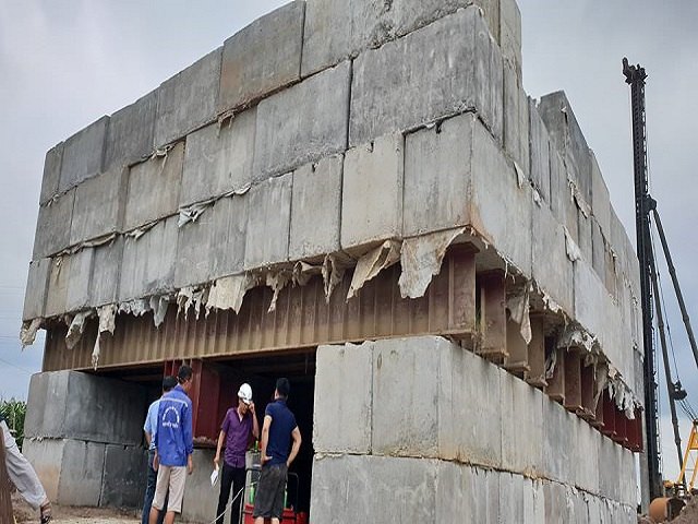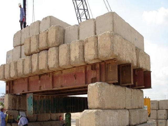 Hệ gối đỡ và hệ tải trọng: Bao gồm nhiều cục tải bê tông cốt thép đúc sẵn, có tải trọng khác nhau.