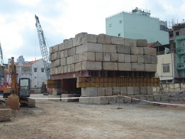 Đối trọng: Là những đối trọng bê tông đúc sẵn, xếp thành khối trên một hệ dầm đỡ bằng thép. Tổng tải trọng lớn nhất > 120% tải trọng thí nghiệm lớn nhất.